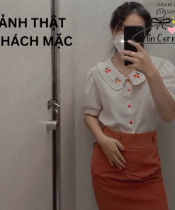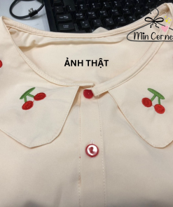 Tên sản phẩm: Áo sơ mi nữ tay ngắn thêu hình cherry cổ sen màu be – min corner