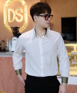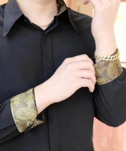 Áo sơ mi trắng nam TUTO5 Menswear SMP01- sơ mi dài tay công sở phối viền gấm vàng họa tiết cotton paisley shirt cao cấp, điểm nhấn phối gấm ở cổ và tay