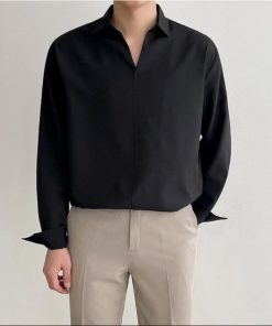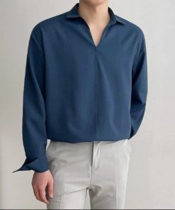 Áo sơ mi nam TUTO5 Menswear dài tay cổ chữ V chất vải lụa không nhăn form rộng phong cách Hàn Quốc