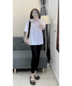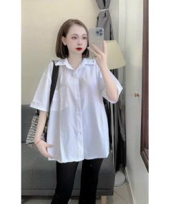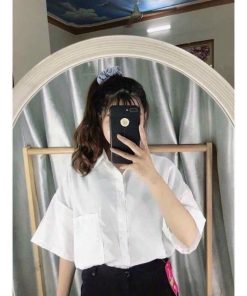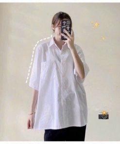 Áo Sơ Mi Trơn Nữ Đi Học Kiểu Dáng Lỡ Tay Chất Liệu Vải Mặc Mát Mẻ Phối Dáng Tinh Tế Form Rộng Bao Đẹp Hàng Hot Trend-HTM FASHION