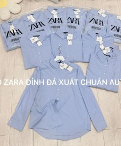 ÁO SƠ MI ZARA XANH ĐÍNH ĐÁ BASIC TTM083 – H2T SHOP