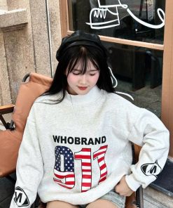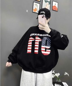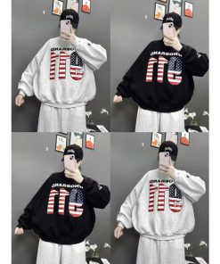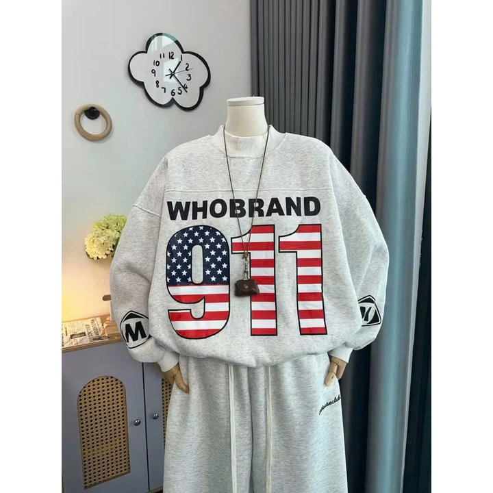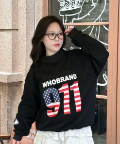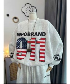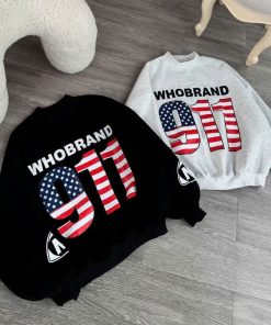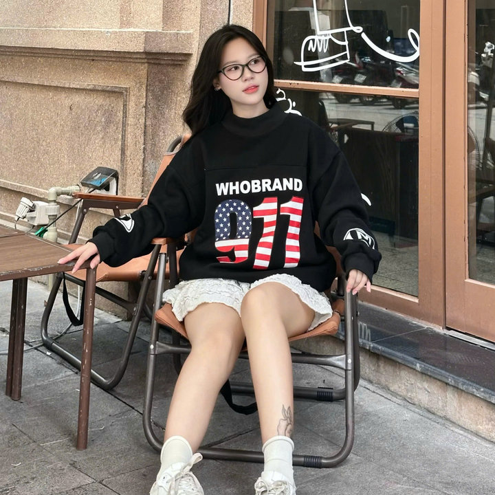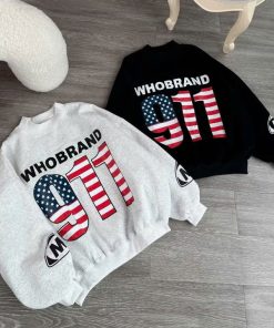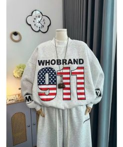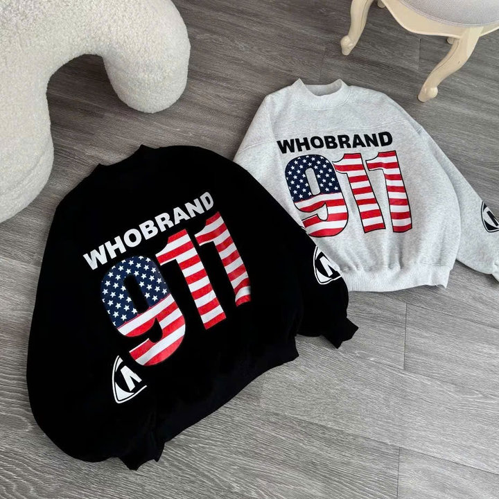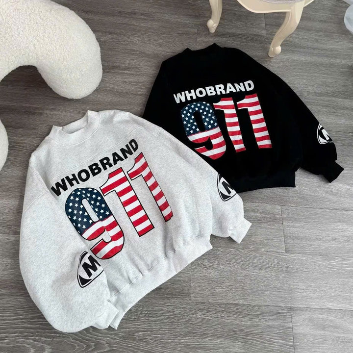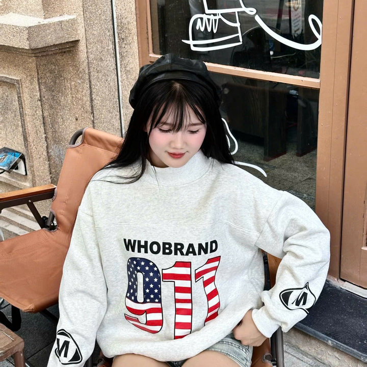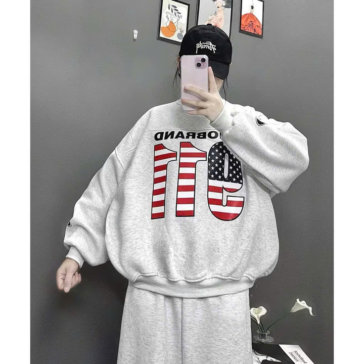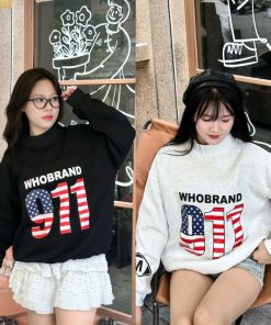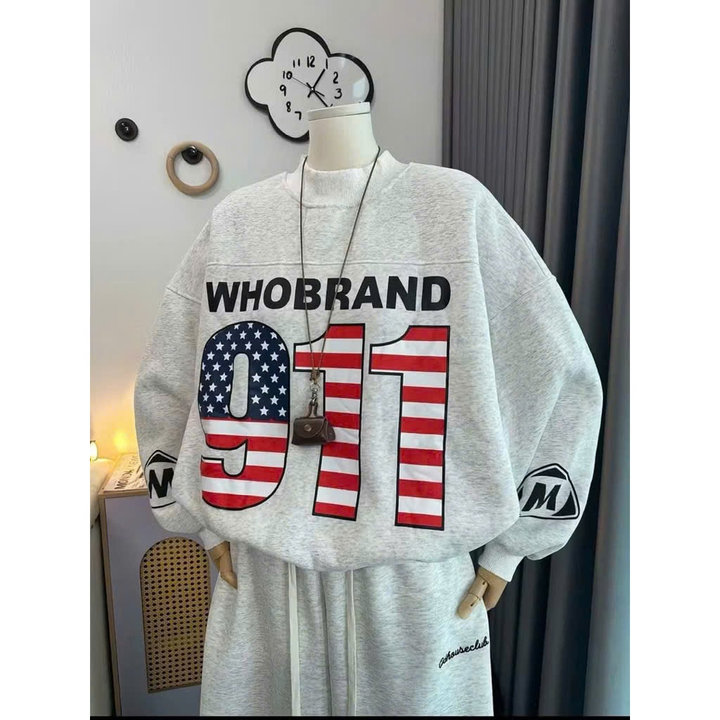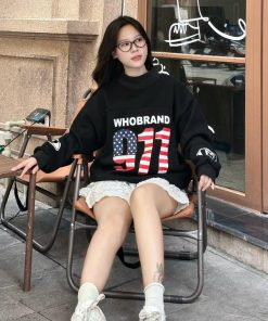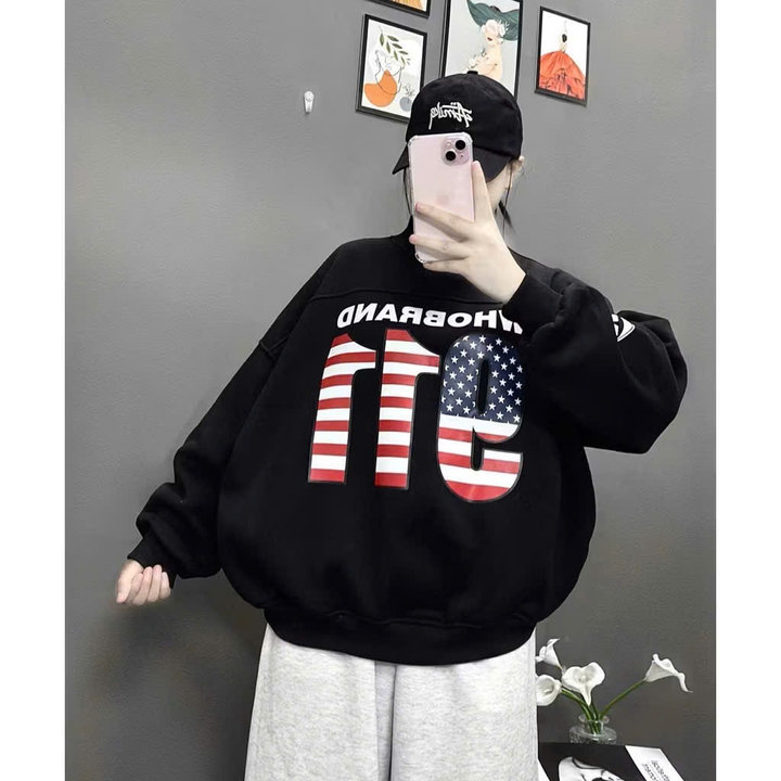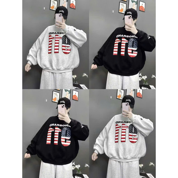 Tên sản phẩm: ÁO SWEATER VẢI NỈ BÔNG CỔ TRÒN IN NỔI SỐ 911 SỌC CỜ FORM BOXY TAY PHỒNG UNISEX NAM NỮ TP79 – GOLDEN DREAM