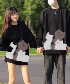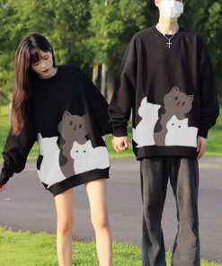 Tên sản phẩm: ÁO SWEATER VẢI NỈ NGOẠI UNISEX NAM NỮ IN HÌNH 3 CHÚ MÈO SIÊU ĐẸP CHO CÁC CẶP ĐÔI TP342 – PHƯƠNG STORE