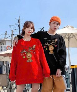 🎄 MÔ TẢ SẢN PHẨM: Áo Đôi Noel Unisex Hình Tuần Lộc Dễ Thương – Áo Sweater Giáng Sinh Couple Siêu Đáng Yêu