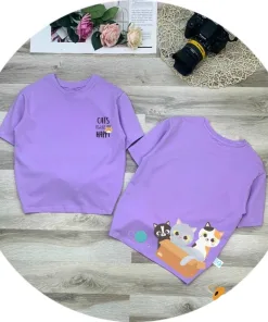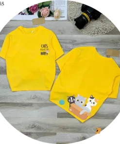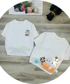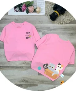 Tên sản phẩm: ÁO THUN BÉ GÁI IN 3 CHÚ MÈO HAPPY – BE YOURSELF