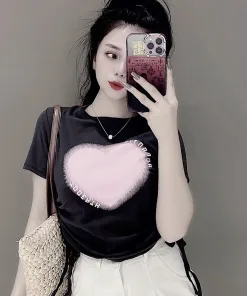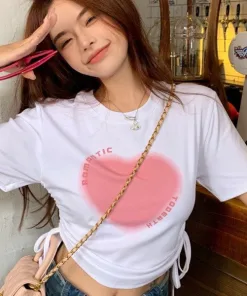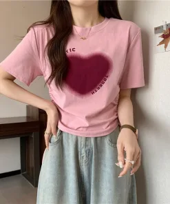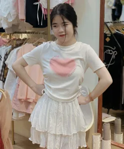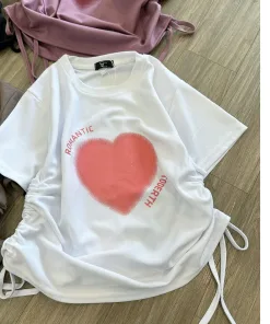 ÁO THUN BABY TEE DÂY RÚT SƯỜN, HỌA TIẾT HÌNH TRÁI TIM