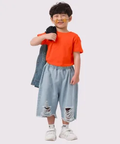 - Form: áo trẻ em, cổ tròn (regular fit)