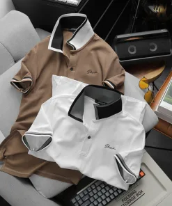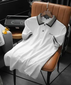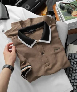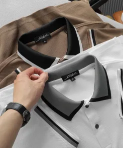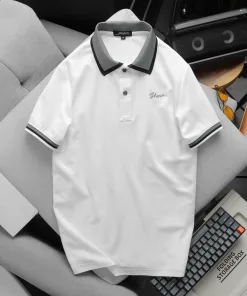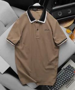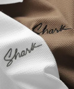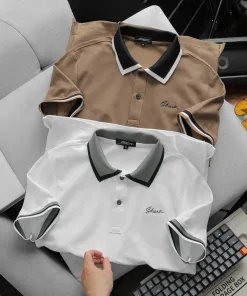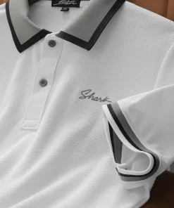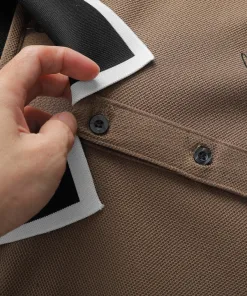 Áo có thiết kế cổ bẻ phối sọc ở bo cổ bo tay cùng chi tiết thêu sắc nét trước ngực tạo điểm nhấn và thêm phần mạnh mẽ