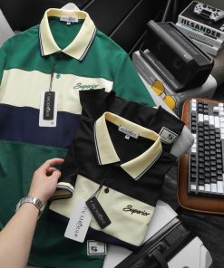 Áo Polo Pack Super với những đường phối ngang được bố trí hài hòa, màu sắc tươi mới tạo cảm giác cân đối và đầy cuốn hút.