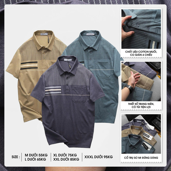 Áo Thun Cổ Bẻ cao cấp Pack Túi Gi