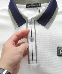 Polo Rears được thiết kế basic thanh lịch, phối bo dệt họa tiết kẻ sọc ở phần tay và cổ trụ áo – cũng chính là điểm nhấn khiến cho Polo Rears thêm phần trẻ trung và thời trang.