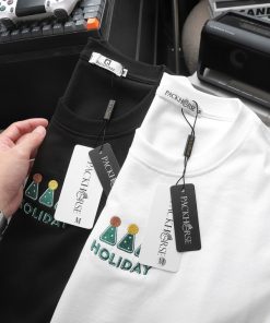 Áo thun Holiday với 2 màu sắc, trắng, đen basic dễ mặc, dễ phối. Hoạ tiết trẻ trung năng động mang đến cho anh em diện mạo tươi trẻ lịch lãm.
