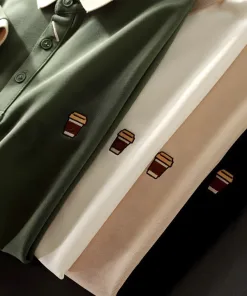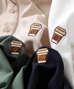 – Aó được thiết kế với kiểu dáng polo trẻ trung, lịch sự phối với phần cổ và tay áo được phối khác màu. Bên cạnh đó họa tiết ly cafe được thêu tinh tế, khéo léo ở phần trước ngực áo tạo điểm nhấn