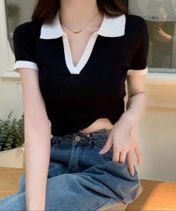 Áo Thun Croptop Phối Với Dáng Cổ Bẻ Siêu Xịn Chất Liệu Vải Thoáng Mát Mẻ Form Kiểu Lửng Đáng Yêu Áo Đẹp Hàng Hot Trend-HTM FASHION