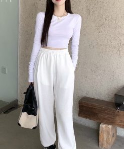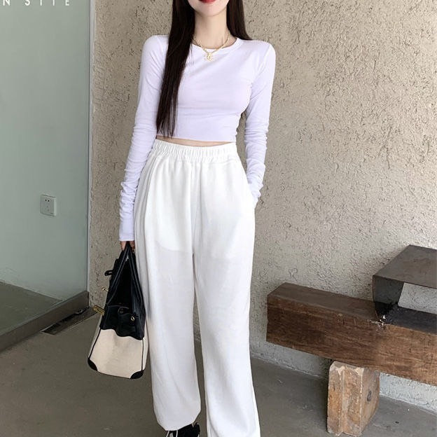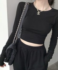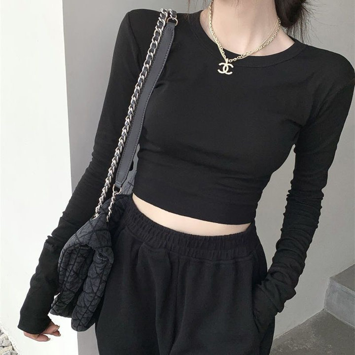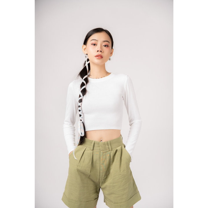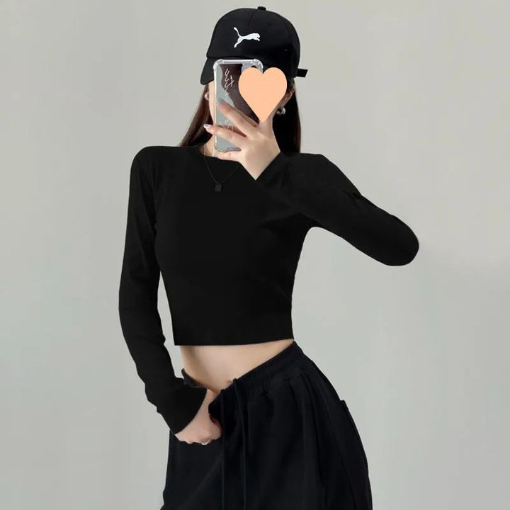 ÁO THUN DÀI TAY CỔ TRÒN TRƠN DÁNG CROPTOP CHẤT LIỆU CO GIÃN, TÔN DÁNG