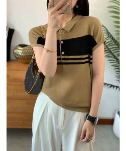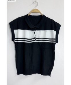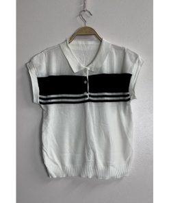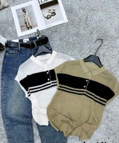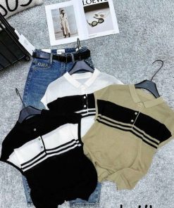 – Aó được thiết kế với phần cổ bẻ, kiểu dáng sát nách phối với họa tiết kẻ ngang trẻ trung. Điểm nhấn của chiếc áo là phần sọc kẻ ngang phối màu tương phản