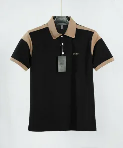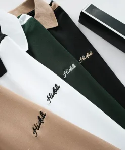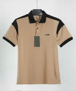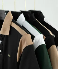 ÁO THUN NAM CỘC TAY CỔ BẺ, PHỐI MÀU VAI HỌA TIẾT THÊU CHỮ NGỰC