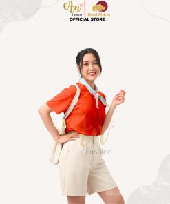 - Form: áo nữ, cổ tròn, tay ngắn (regular fit)