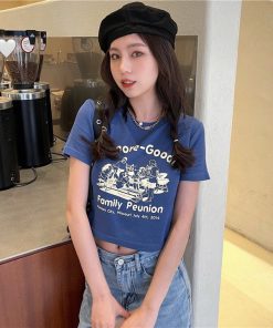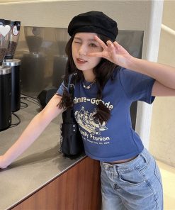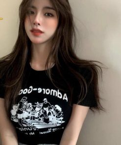 🌸 Áo croptop ôm body nữ cổ tròn in chữ cực cool cực chất