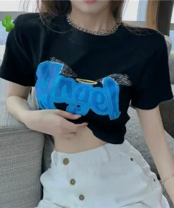 🌸 Áo croptop ôm body nữ cổ tròn in chữ cực cool cực chất
