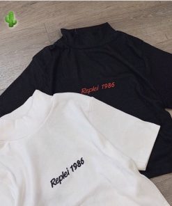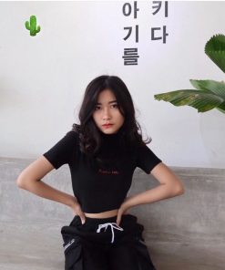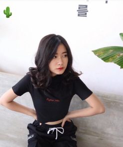 🌸 Áo croptop ôm body nữ cổ tròn in chữ cực cool cực chất
