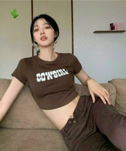 🌸 Áo croptop ôm body nữ cổ tròn in chữ cực cool cực chất