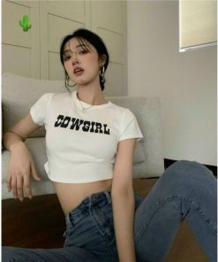 🌸 Áo croptop ôm body nữ cổ tròn in chữ cực cool cực chất