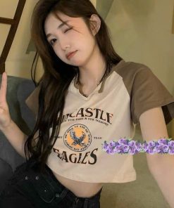 🌸 Áo croptop ôm body nữ cổ tròn in chữ cực cool cực chất