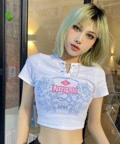 🌸 Áo croptop ôm body nữ cổ tròn in chữ cực cool cực chất