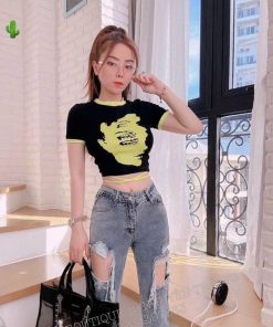 🌸 Áo croptop ôm body nữ cổ tròn in chữ cực cool cực chất