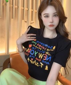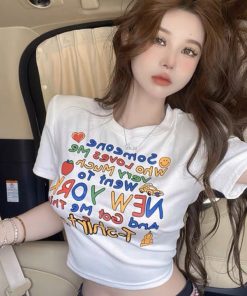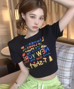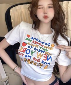 áo Thun Nữ Croptop Cổ Tròn Tay Ngắn Màu Sắc Sinh động New York – Ausa House
