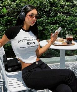 🌸 Áo croptop ôm body nữ cổ tròn in chữ cực cool cực chất