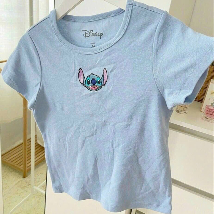 Áo Thun Nữ Croptop Cổ Tròn Tay Ngắn Stich – Ausa House