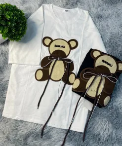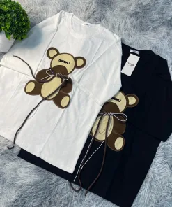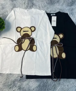 • – Tên Sản phẩm: Áo thun nữ, hình thêu gấu buộc dây cotton khô 3158