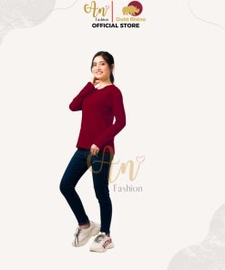 - Form: áo nữ, cổ tròn, tay dài (regular fit)