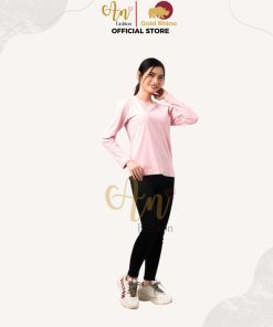 - Form: áo nữ, cổ tròn, tay dài (regular fit)