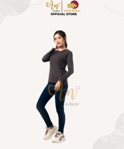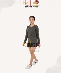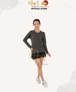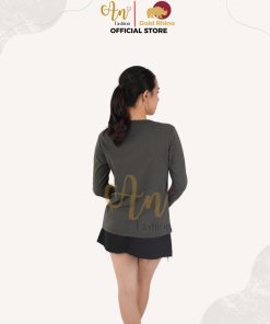 - Form: áo nữ, cổ tròn, tay dài (regular fit)