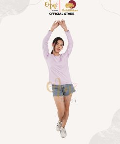 - Form: áo nữ, cổ tròn, tay dài (regular fit)