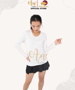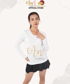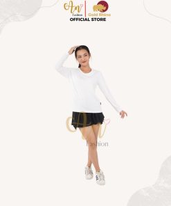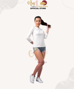 - Form: áo nữ, cổ tròn, tay dài (regular fit)