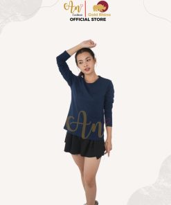- Form: áo nữ, cổ tròn, tay dài (regular fit)