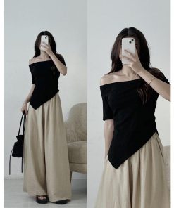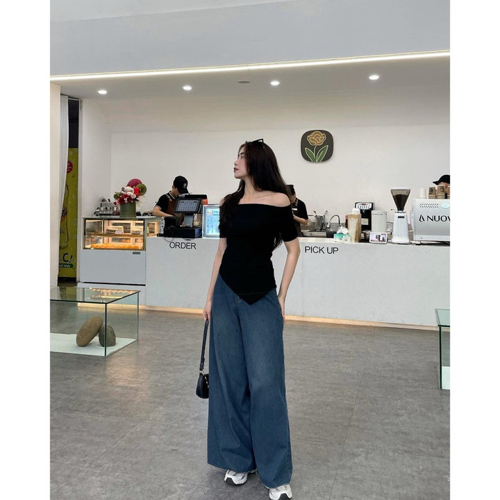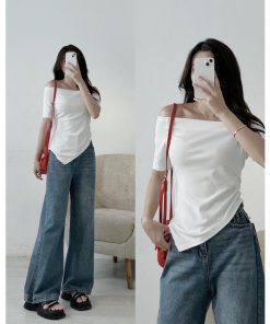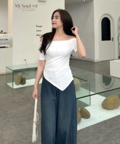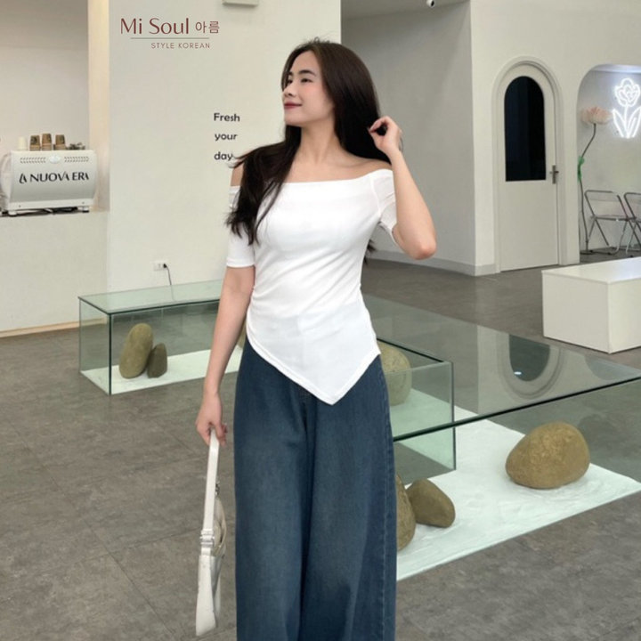ÁO THUN NỮ TRỄ VAI, VẠT NHỌN KIỂU DÁNG NHẸ NHÀNG, QUYẾN RŨ