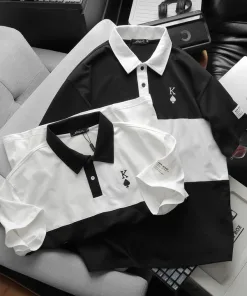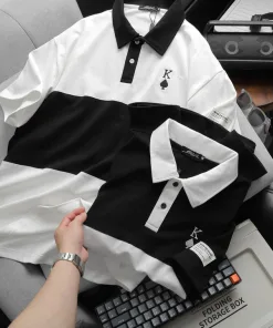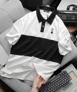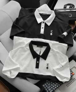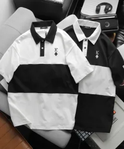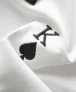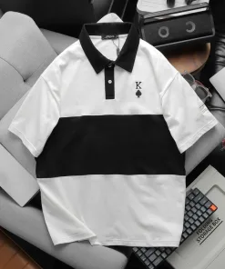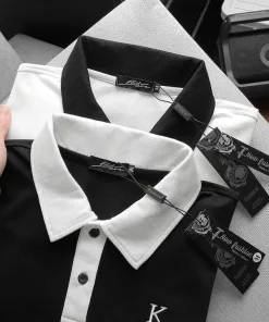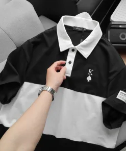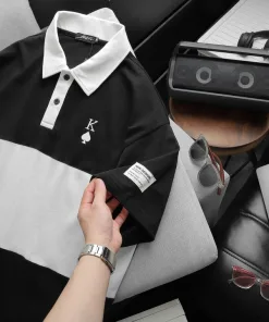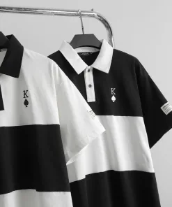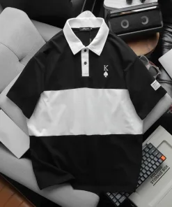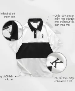 Áo có thiết kế cổ bẻ phối sọc ở bo cổ bo tay cùng chi tiết thêu sắc nét trước ngực tạo điểm nhấn và thêm phần mạnh mẽ