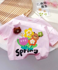 – Áo thun bé gái với họa tiết hoa dễ thương và hình ảnh gấu bông xinh xắn, tạo nên vẻ ngoài thật sinh động và đáng yêu cho các bé. Chất liệu vải mềm mại, thoáng mát giúp bé thoải mái vui chơi cả ngày dài. Thiết kế tay lỡ và cổ tròn mang đến sự thoải mái và dễ dàng khi vận động. Sản phẩm có màu sắc tươi sáng, phù hợp với các bé yêu thích phong cách năng động, dễ thương.