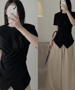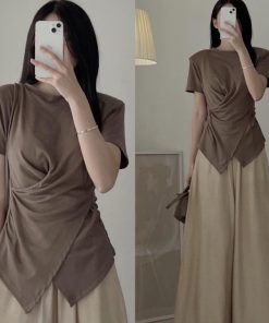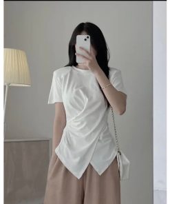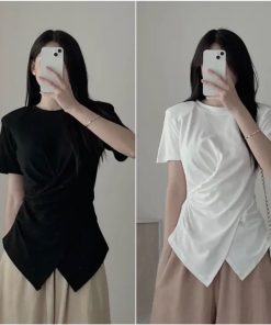 Tên sản phẩm: ÁO THUN XOẮN EO TAY NGẮN VẠT XÉO HACK EO TÔN DÁNG – KIM