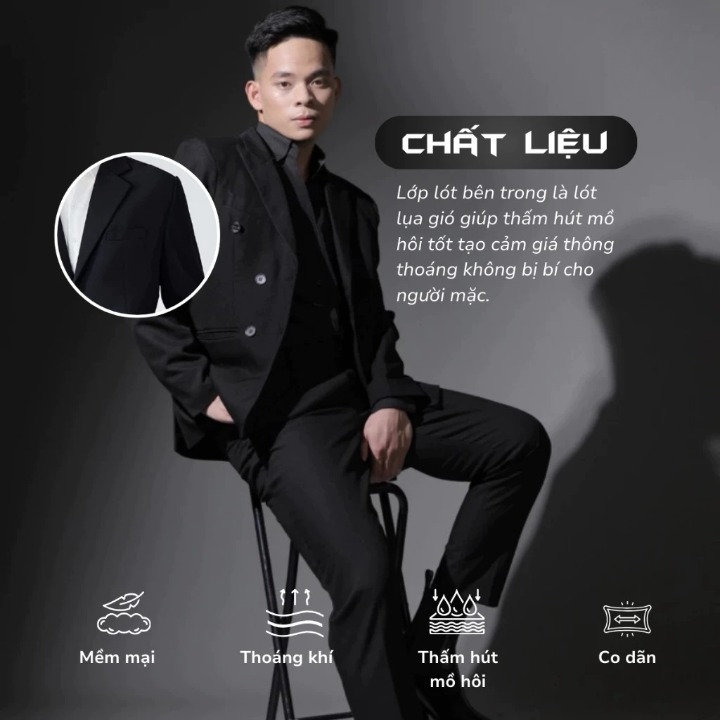 Lót trong: Lụa gió cao cấp, mềm mịn, thấm hút mồ hôi, tạo cảm giác thông thoáng, không gây bí bách.