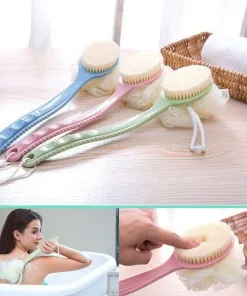 – Thiết kế 2 đầu: 1 đầu bàn chải, 1 đầu bông tắm dễ dàng sử dụng