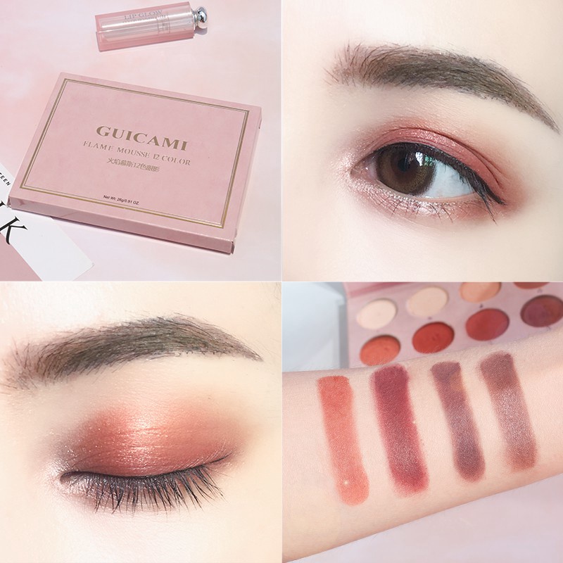- Phấn mắt 12 Color với sự kết hợp của tone cam đất và hồng đất.