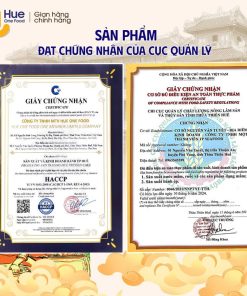 – Bánh ép Huế được hút chân không nên bảo quản được lâu, không hôi dầu và có chứng nhận ATVSTP và HACCP.