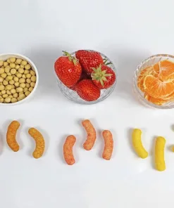 Gạo lứt hữu cơ vị dâu tây: gạo lứt 41,67%, fructooligosaccharide 22,92%, đường 16,67%, dầu đậu nành 9,42% (Pháp), dâu 5%, bơ cacao 3,13 %, vitamin, probiotic, đậu nành, sữa.