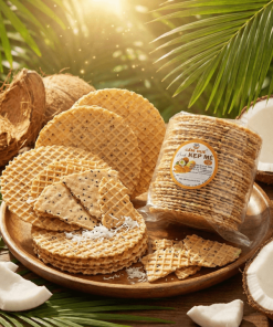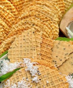 Bánh kẹp mè dừa mang hương vị béo nhẹ – ngọt dịu – thơm vani, ăn hoài mà không ngán.